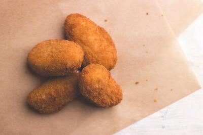Battered chicken, chilli mayo, tomato, lettuce in a brioche bun.