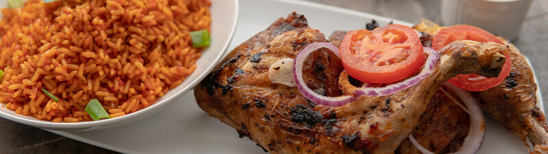 (Vegetarian) A West African classic Basmati rice is cooked in a flavourful tomato based sauce, you will not be disappointed